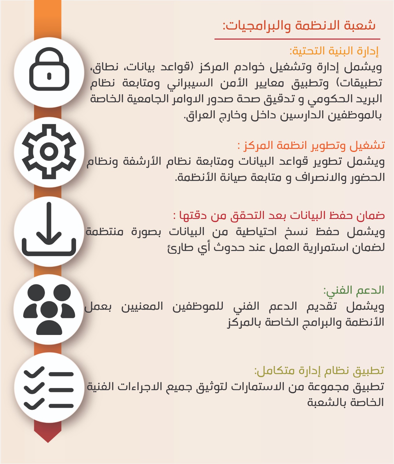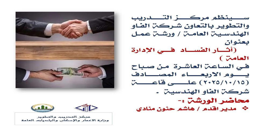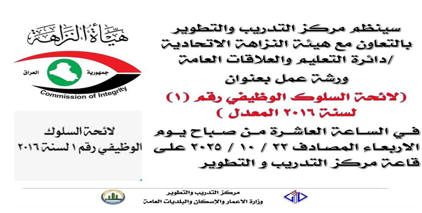 يسر مركز التدريب والتطوير استقبال استفسارات ومشاكل الموظفين والمراجعين من خلال البريد الإلكتروني المعتمد أدناه، وستُعرض بشكل يومي على مدير المركز لضمان سرعة الاستجابة: info@tdc.moch.gov.iq